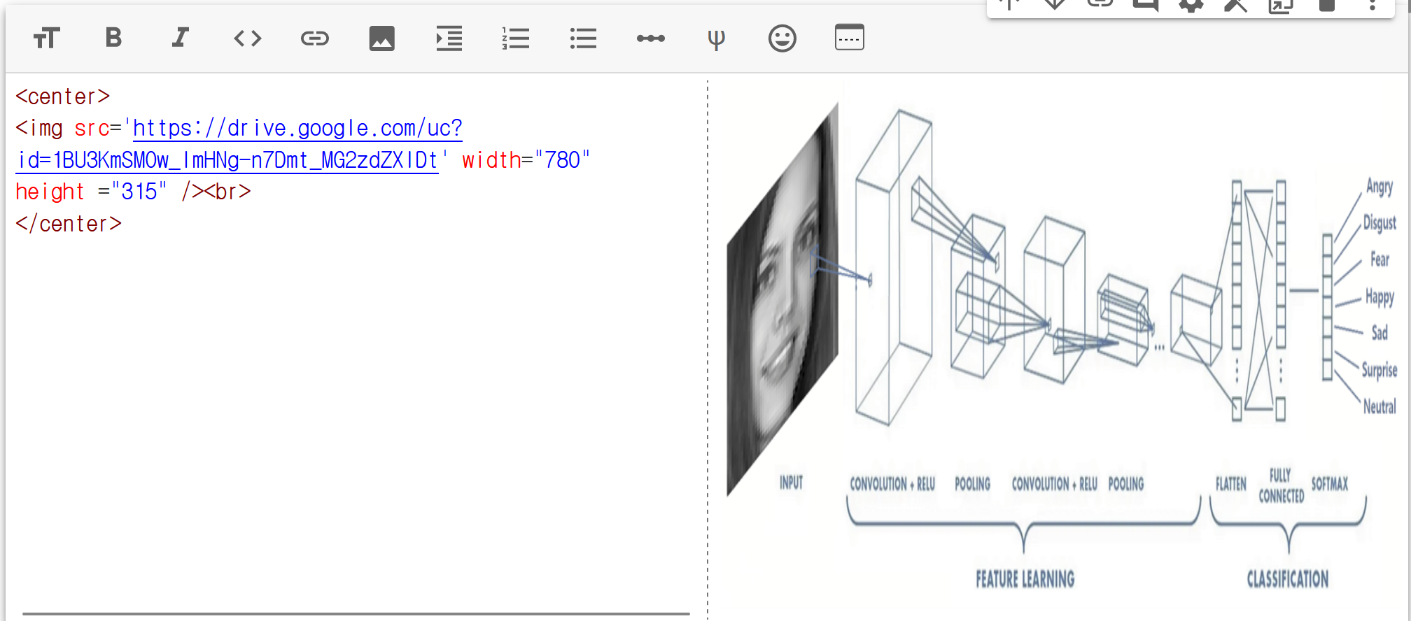 3. Colab에서 텍스트 셀을 생성해 복사한 링크를 아래 양식으로 변경해준다.