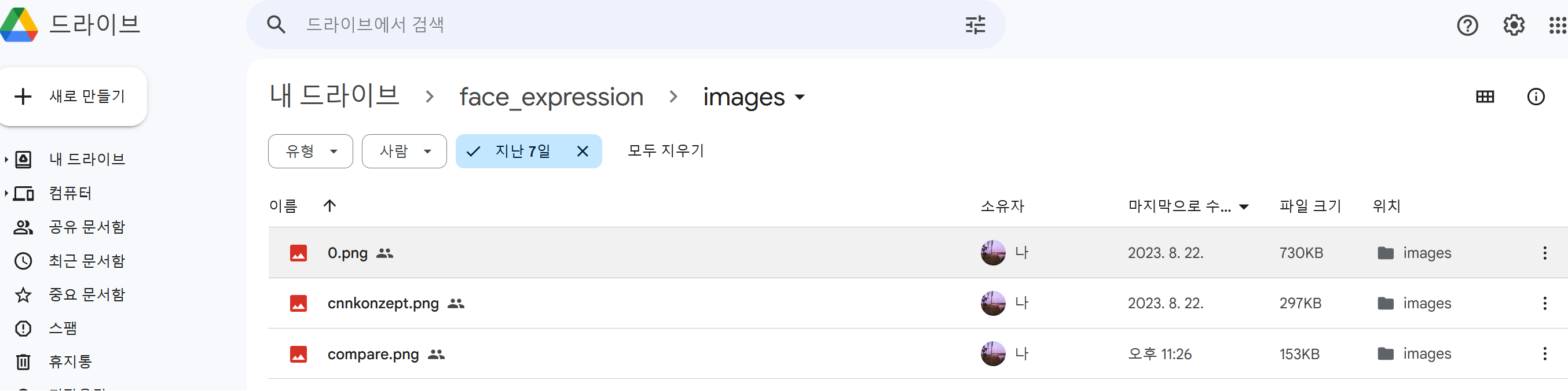 1. 먼저, 구글 드라이브에 Colab에 올릴 사진을 업로드 한다.
