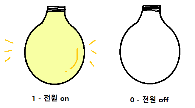 각각의 스위치는 '켜진 상태(On)'과 '꺼진 상태(Off')를 나타내는데, 이 각각의 상태를 각각 1과 0으로 표현한다.