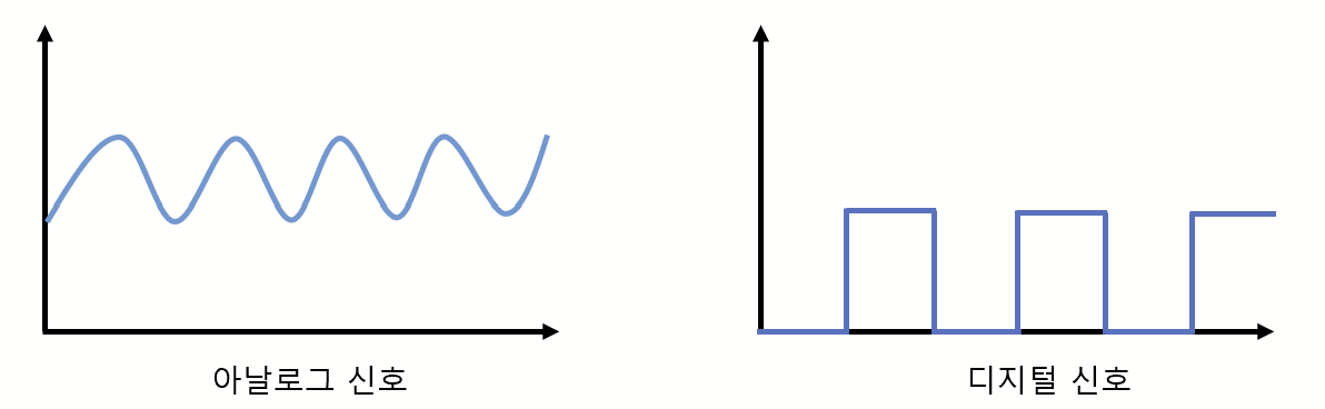 OSI 모델의 1계층인 물리 계층에 대해 알아보자. 물리 계층은 상위 계층에서 내려온 0과 1로 이뤄진 비트열 데이터를 신호(signal)로 변환하여 전송 매체를 통해 전달하는 역할을 한다. 신호의 형태는 여러 가지로, 전기 신호, 광 신호, 전자기파 신호 등이 존재하며 전기 신호는 아날로그 신호와 디지털 신호로 나뉜다.