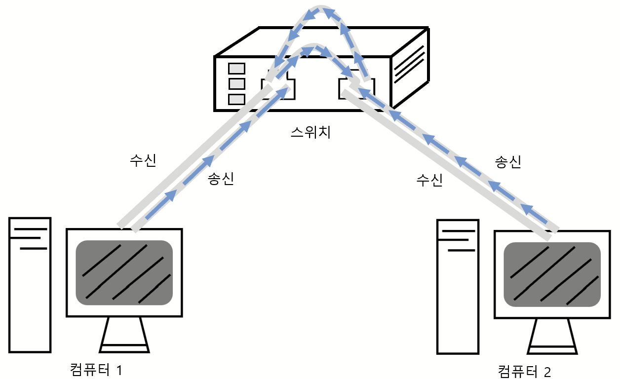 - 스위치는 전이중 통신 방식을 사용한다.