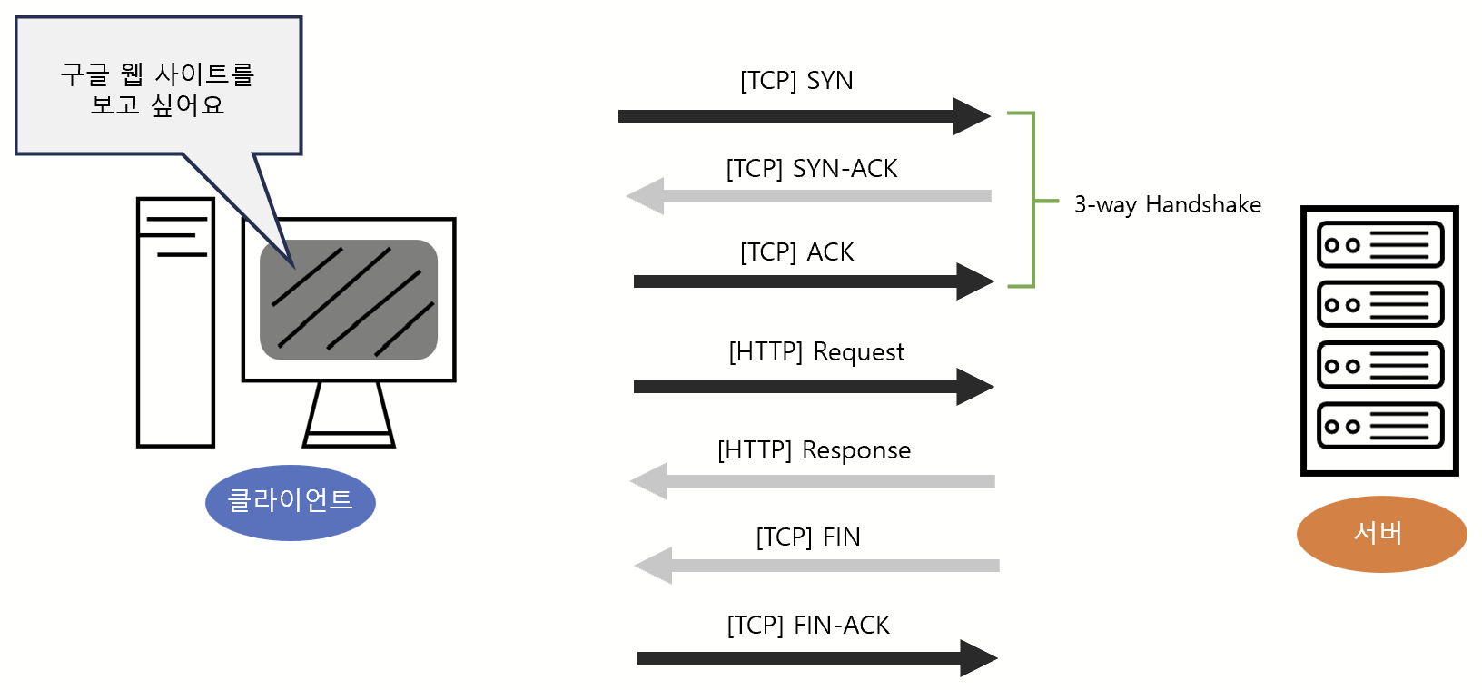 3). 브라우저는 받은 IP 주소를 통해 구글 서버와 TCP 연결을 설정한다.