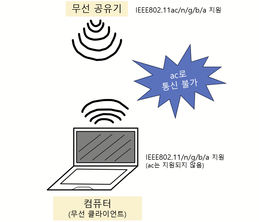 - 다양한 통신 규격을 지원하는 공유기가 있어 좋지만, 무선 클라이언트도 그만한 규격을 지원해야 하지 않는 경우들도 있으니 주의해야한다.