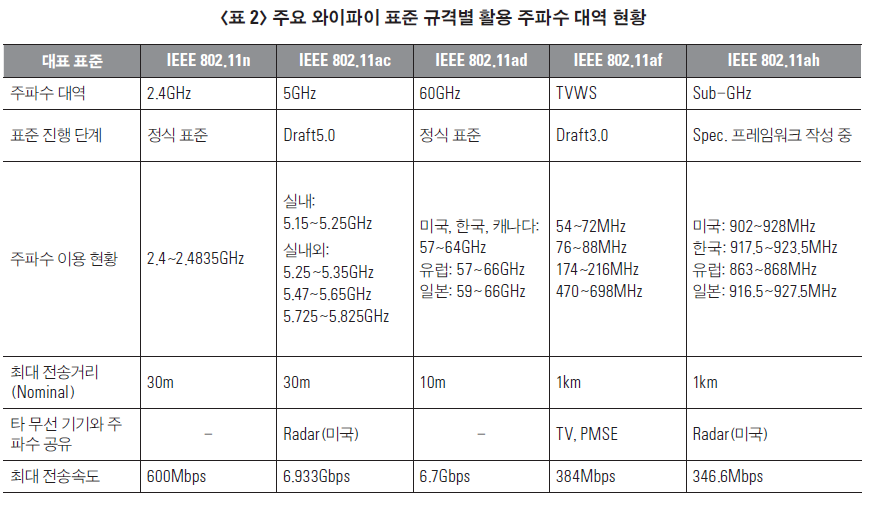 - 추가로 IEEE802.11b와 IEEE802.11g는 서로 다른 채널을 사용하더라도 일부에서 같은 주파수를 사용하기 때문에 간섭이 생길 수 있어 주의해야 한다.