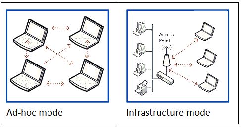 - 인프라스트럭처 모드가 가장 일반적으로 사용된는 무선 네트워크 연결 방식이다