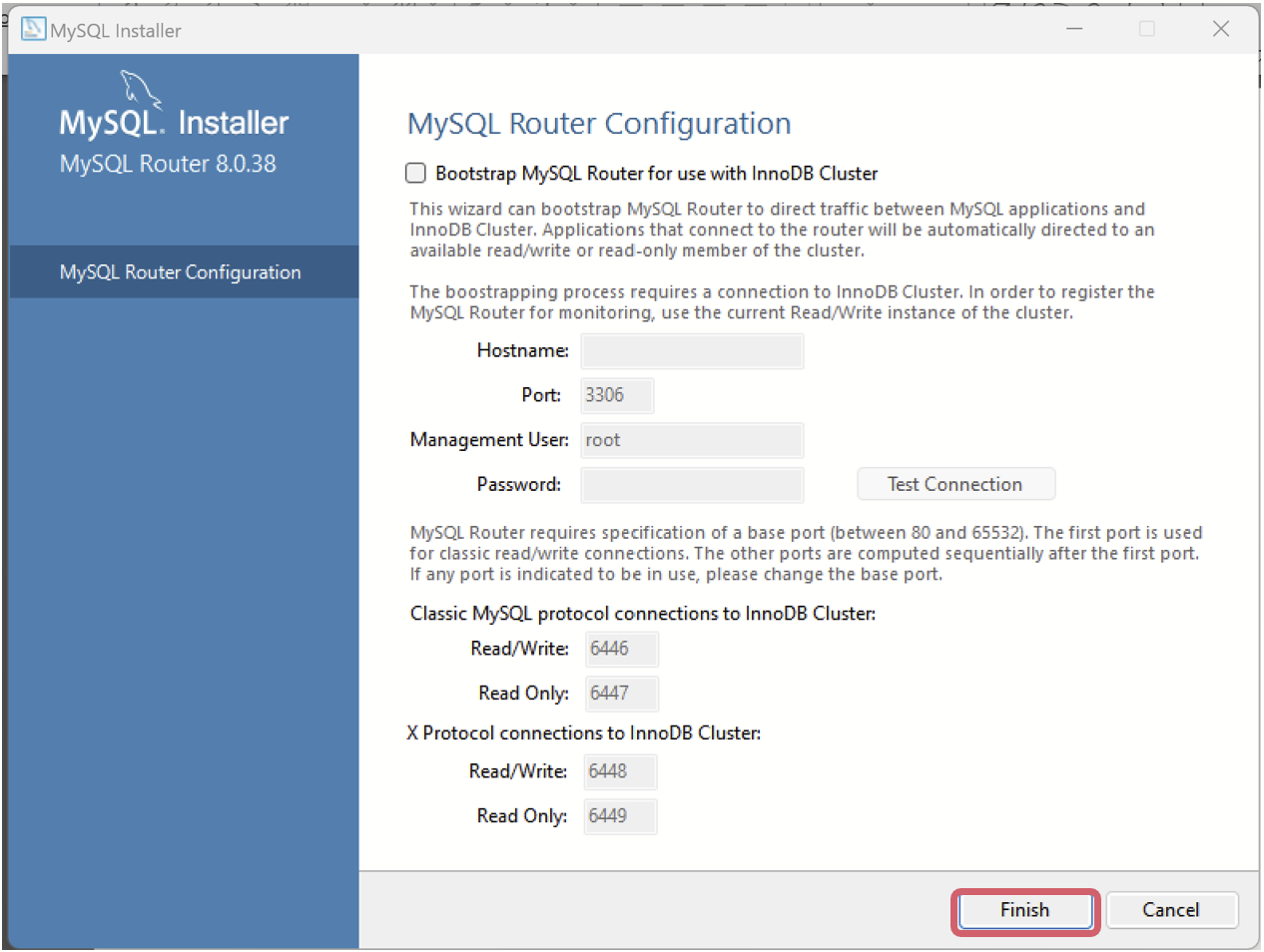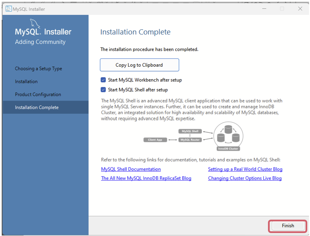 21. Start MySQL Workbench after Setup에만 체크를 해주고 Finish 버튼을 클릭한다.
