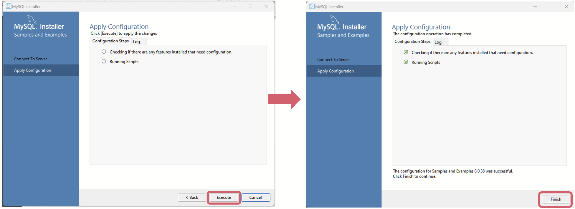 19.Execute 버튼 클릭 후, 항목에 모두 체크 표시가 뜨면 Finish 버튼을 클릭한다.