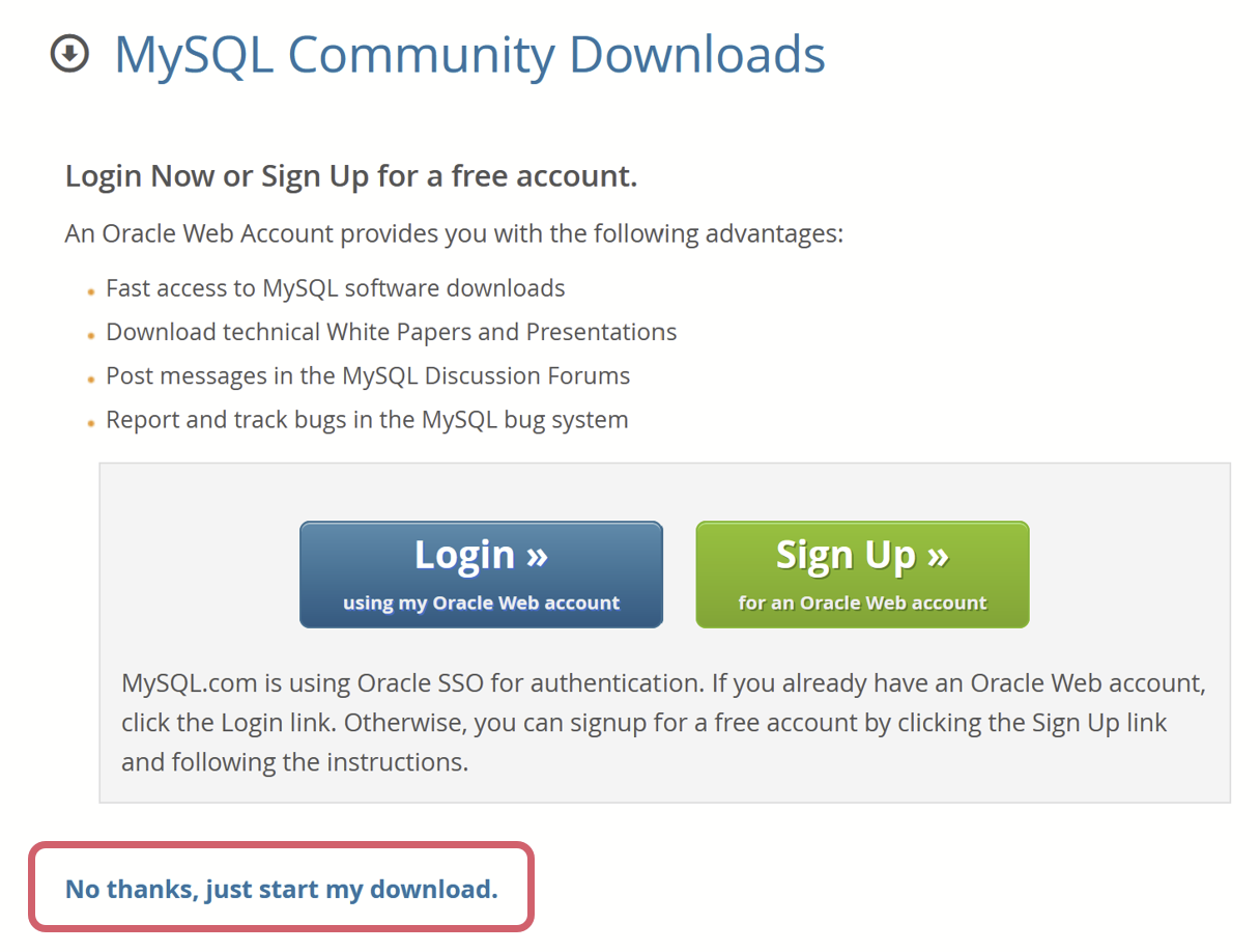 6. 좌측 하단의 No thanks, just start my download를 클릭해서 설치파일 다운받는다.