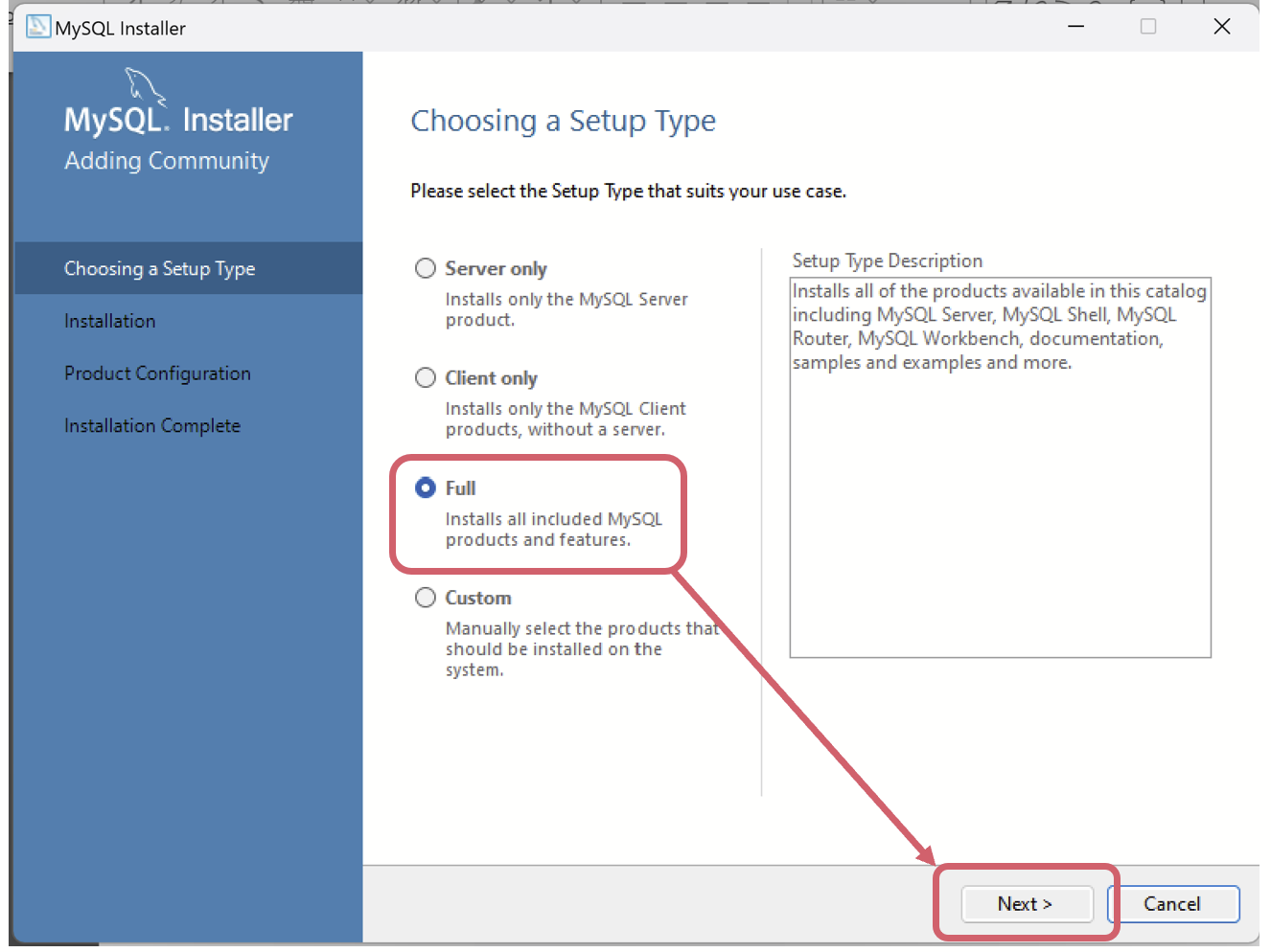 8. 원하는 설치 타입을 골라서 Next를 눌러준다.