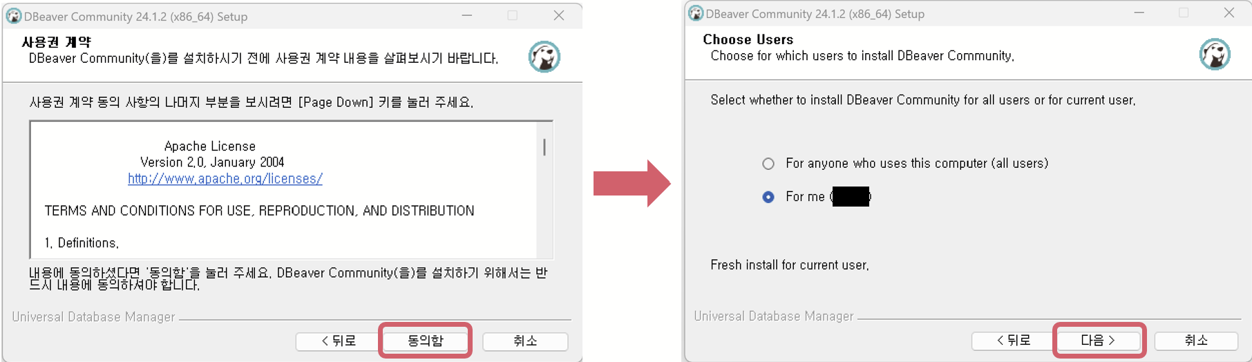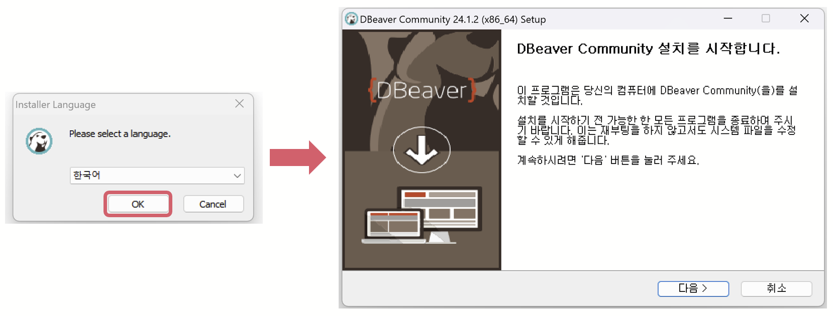 4.한글로 설정해 준 후 다음 버튼을 클릭한다.