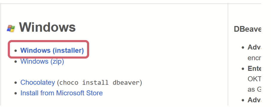 3. Windows (installer)를 클릭한다. (각자 알맞는 파일로 설치해주자)