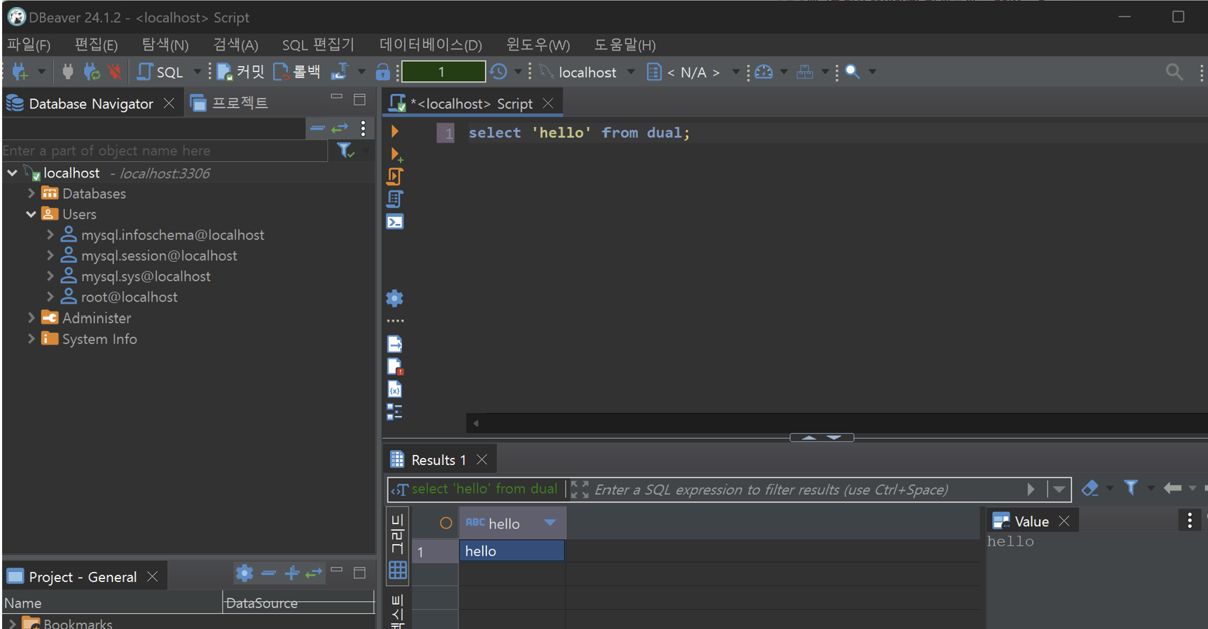 9. 준비가 끝났으니 예시로 sql문 하나를 작성해보자.