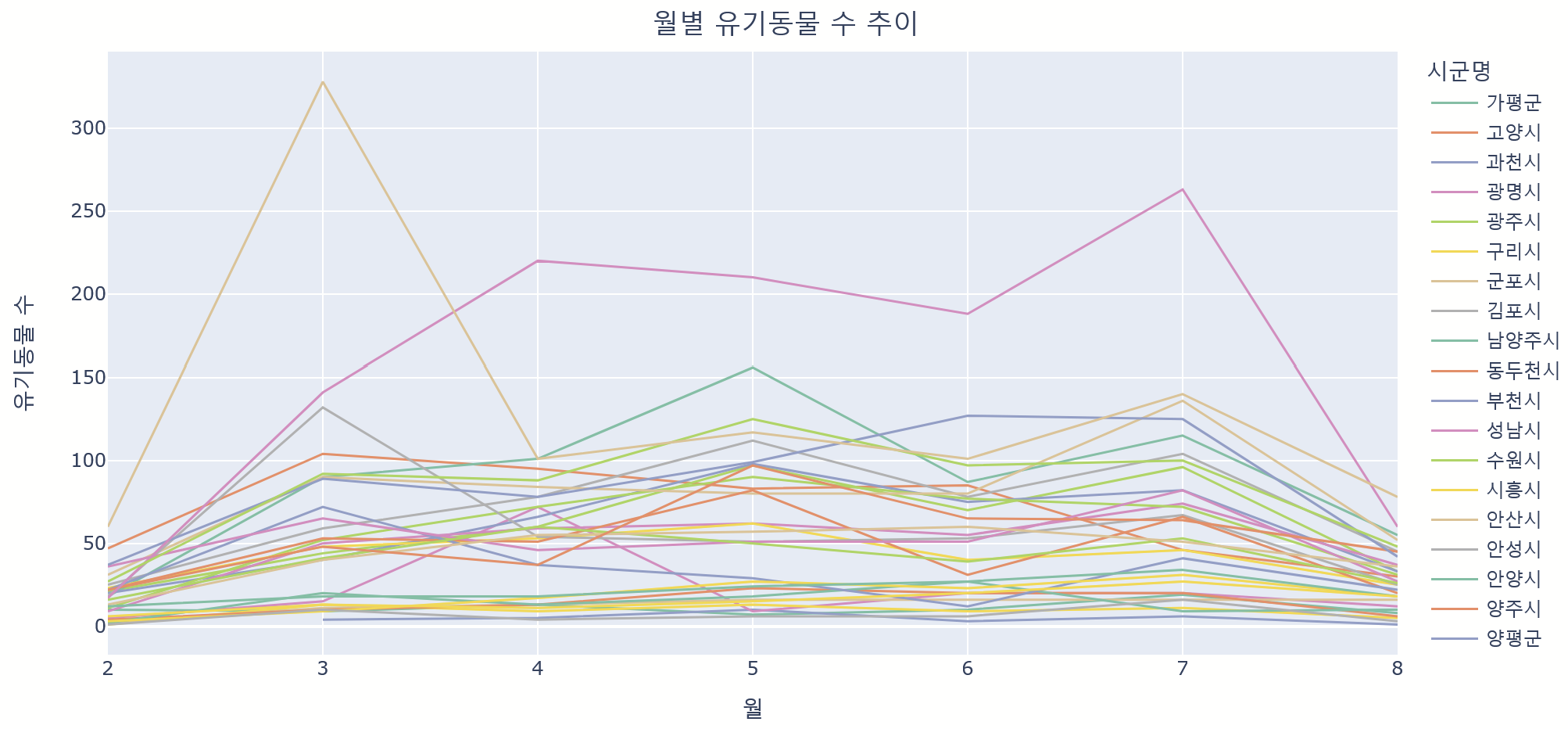 'text': '월별 유기동물 수 추이',