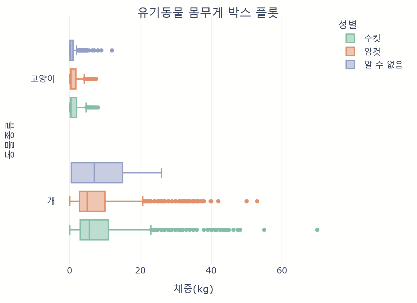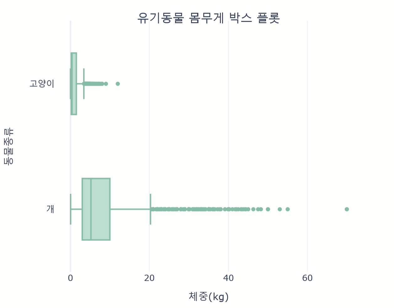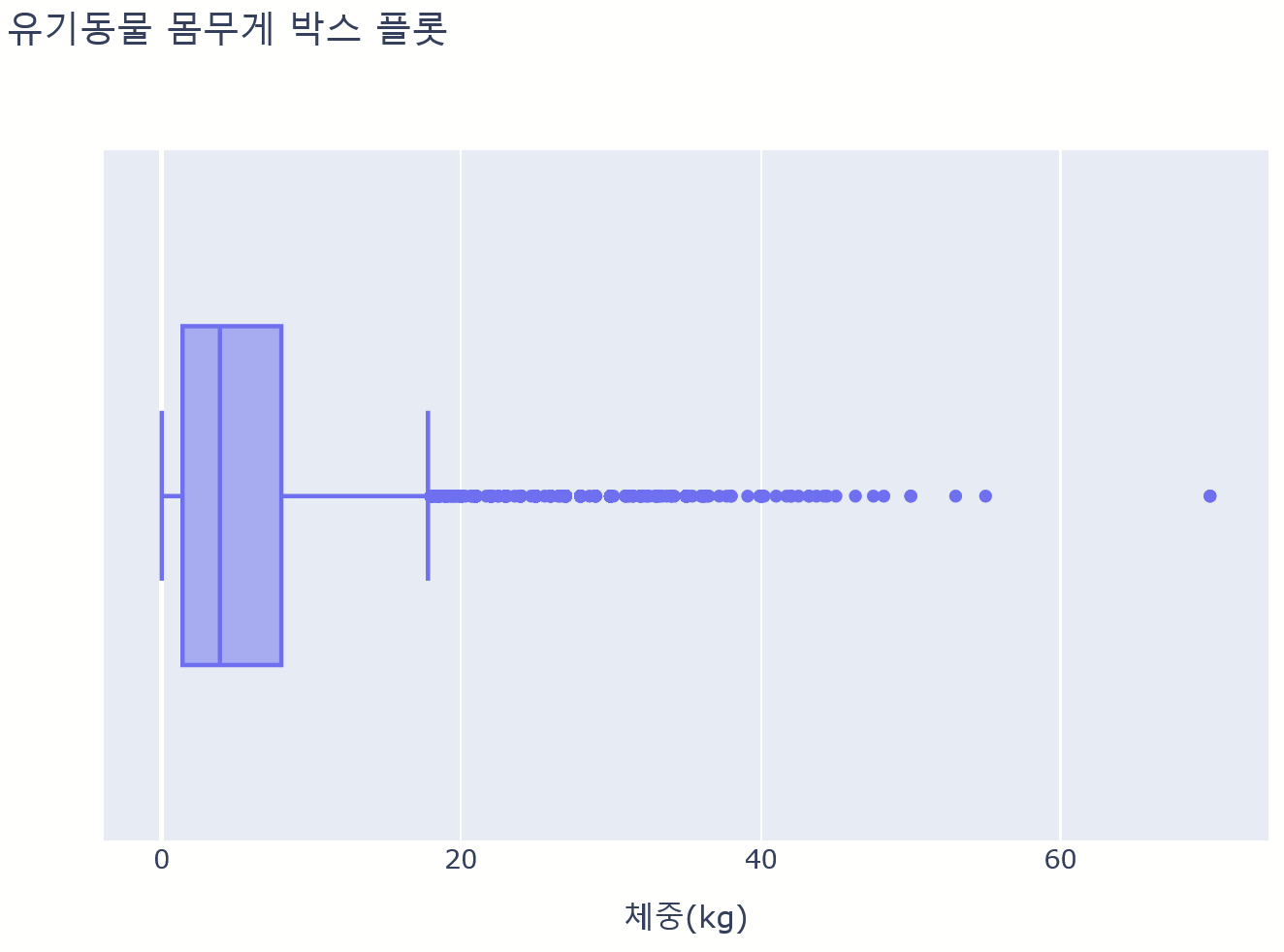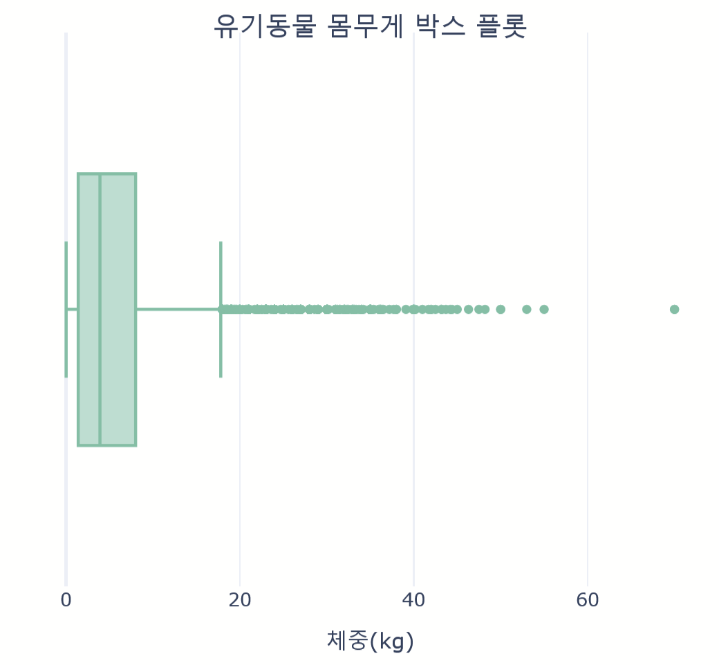 'text': '유기동물 몸무게 박스 플롯',