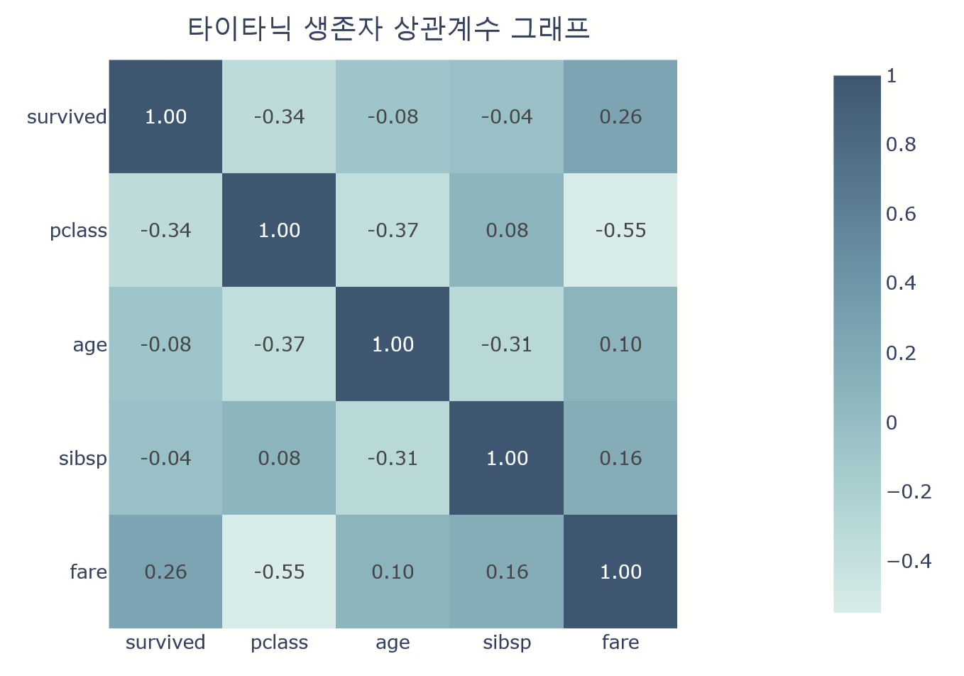'text': '타이타닉 생존자 상관계수 그래프',