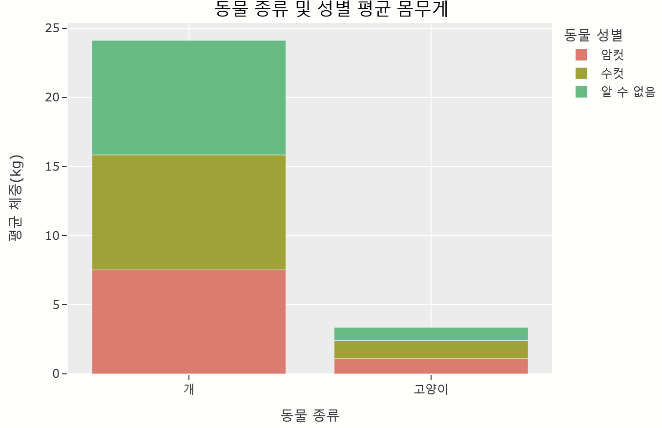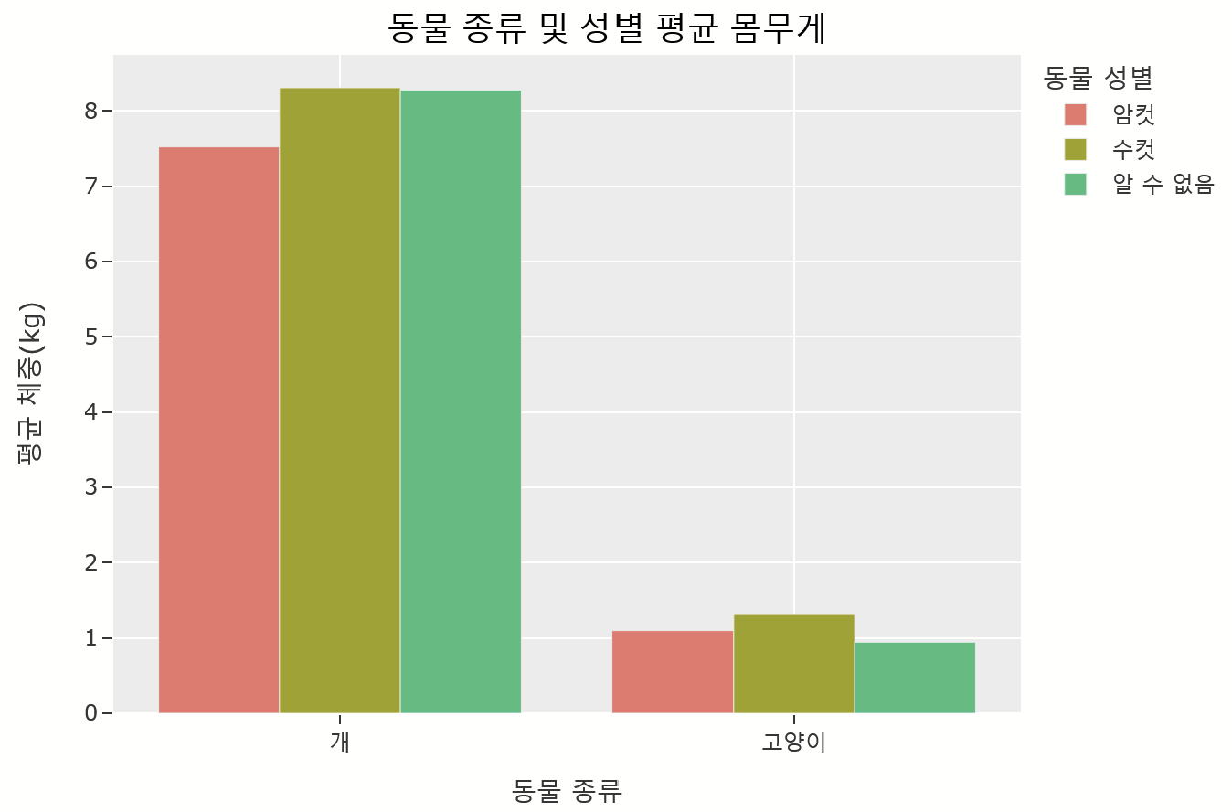 'text': '동물 종류 및 성별 평균 몸무게',