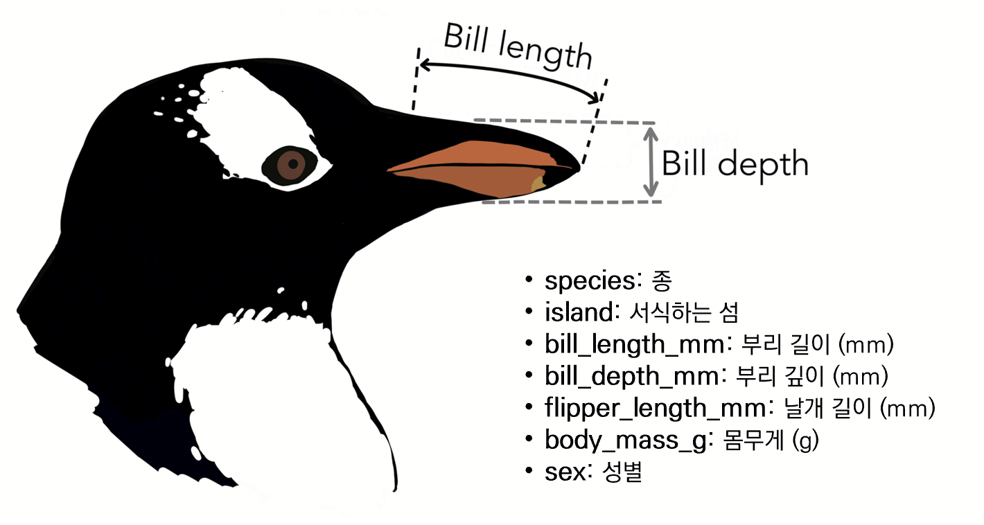 산점도 그래프는 그 유명한 펭귄 데이터를 활용해보자.