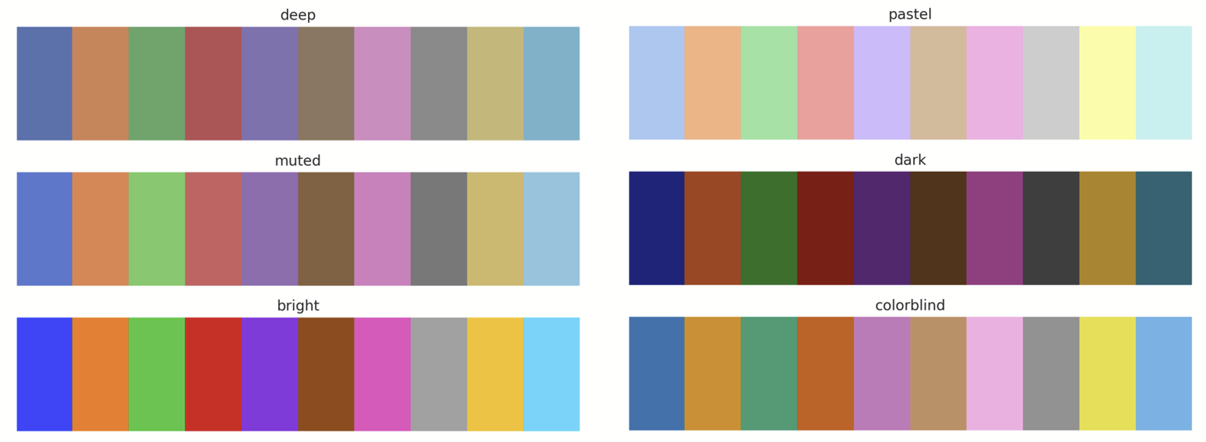 ※ seaborn에는 기본 색상 팔레트에 6가지 변형이 있다.