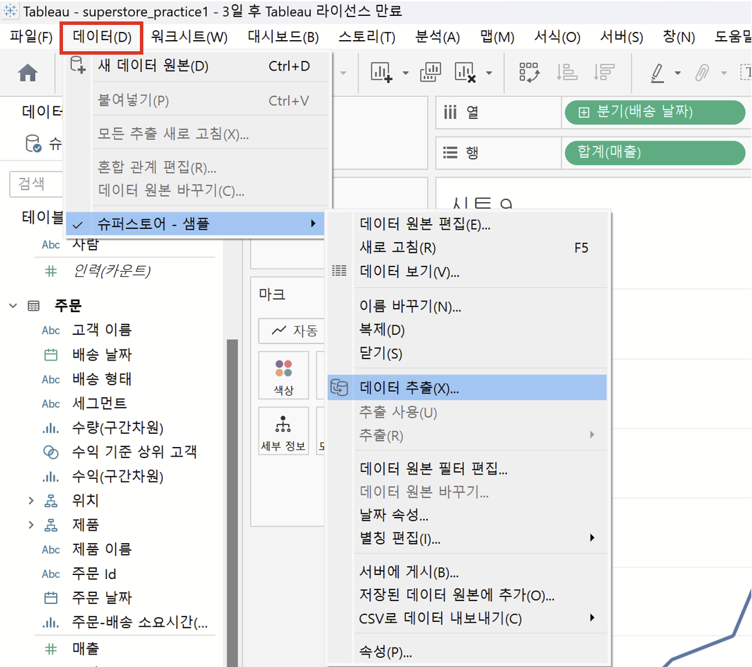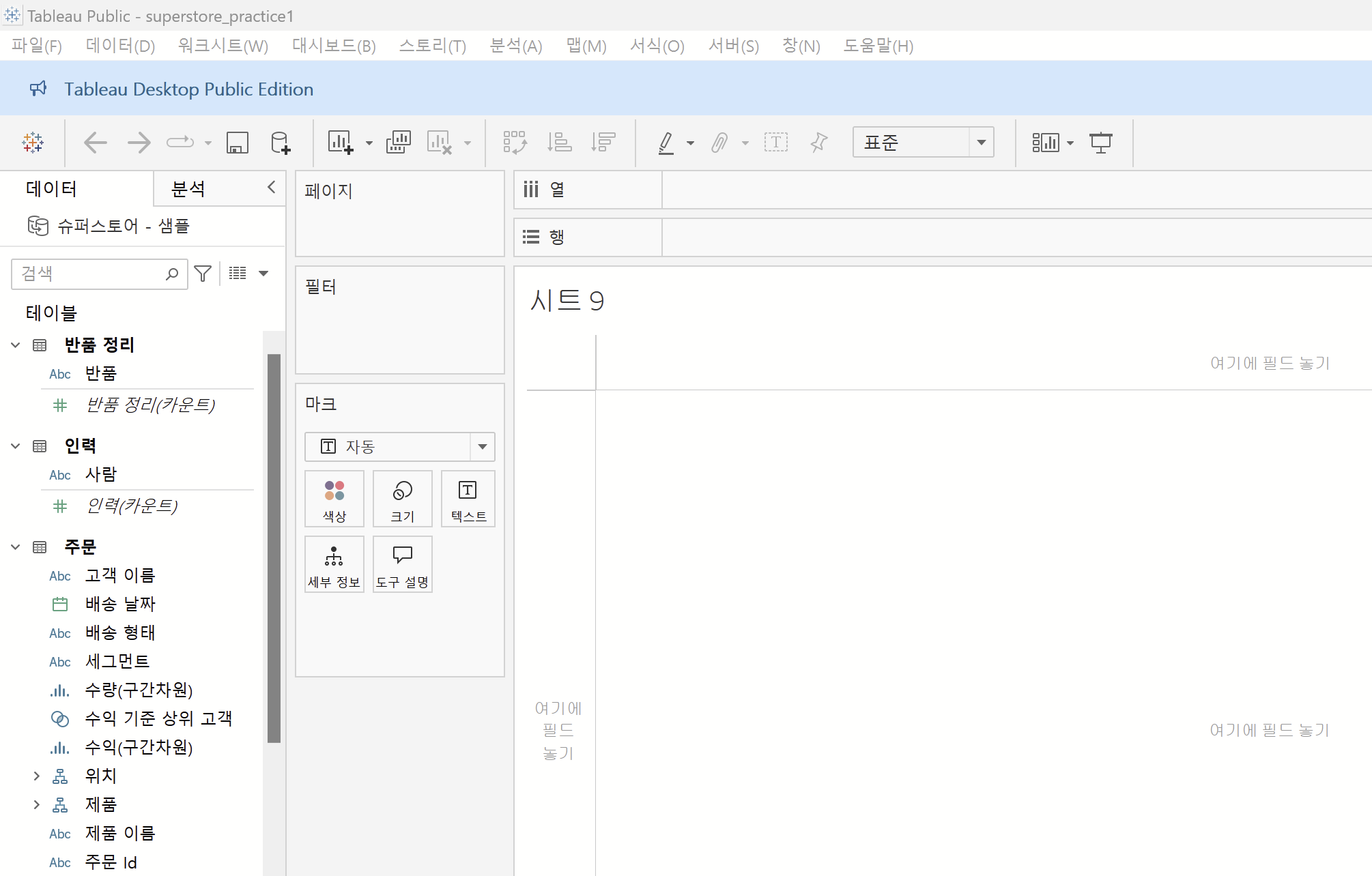 일단, 원래 작업하던 태블로 데스크톱으로 돌아간다.