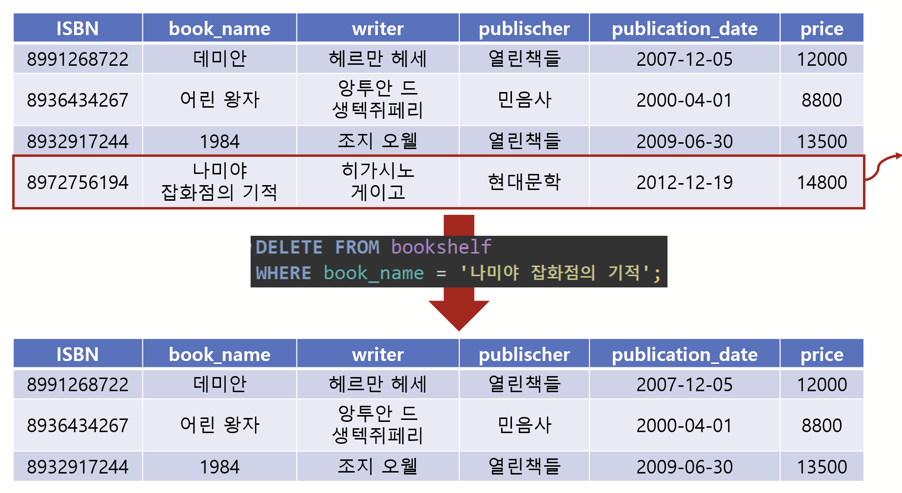• DELETE 구문은 테이블에서 특정 조건을 만족하는 행을 삭제할 때 사용된다.