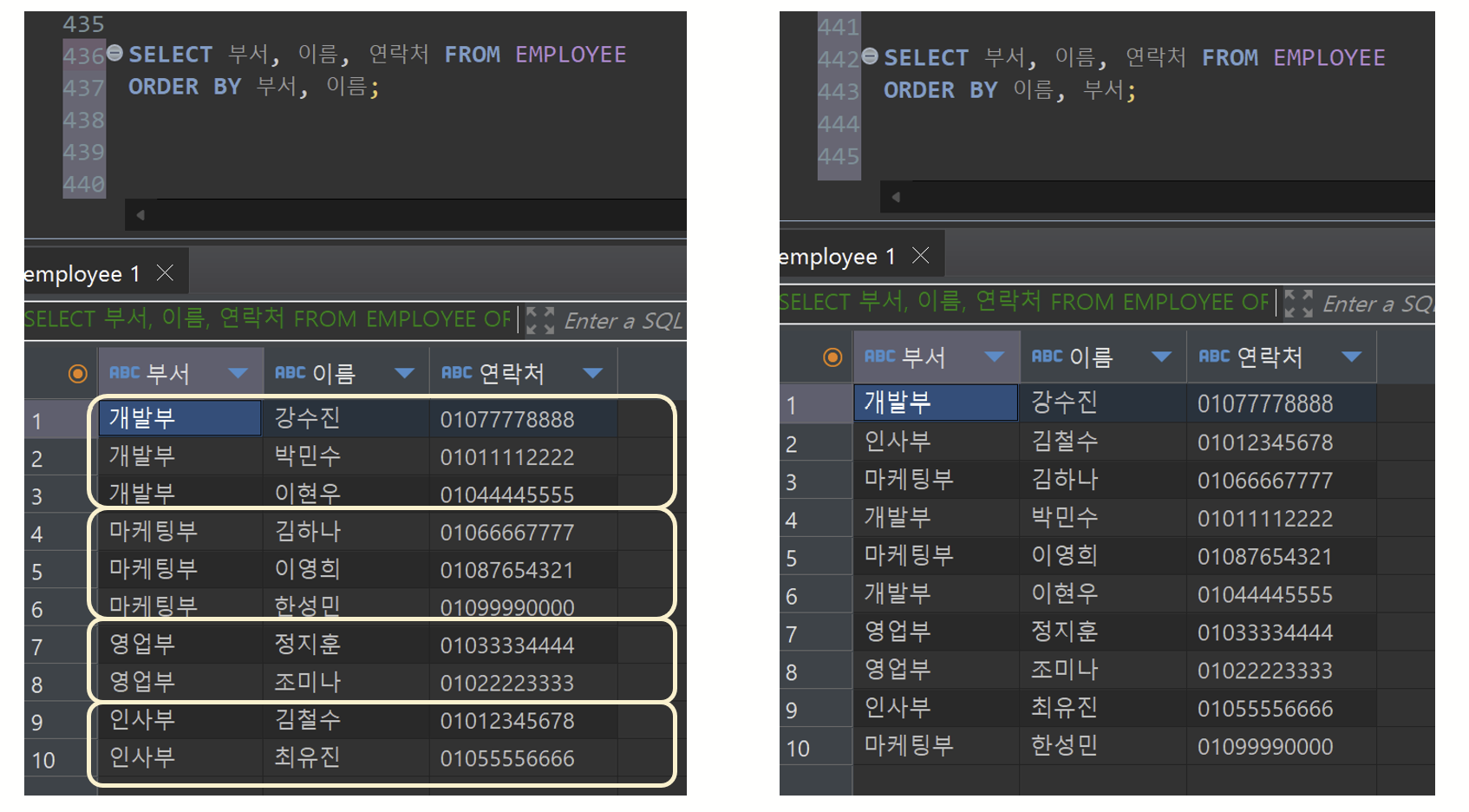 • 위와 같이 여러 열을 기준으로도 정렬이 가능한데,