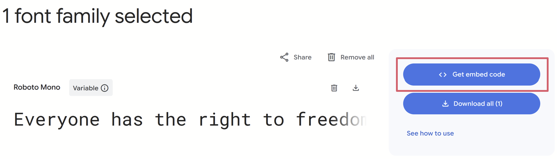 이어서 '<> Get embed code'를 클릭한다.