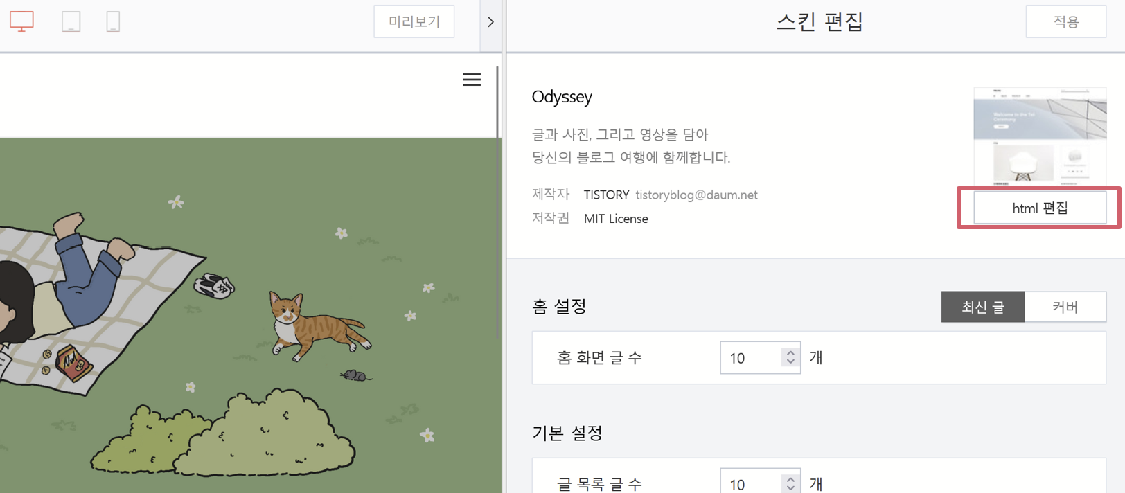 오른쪽 상단에서 [html 편집]을 클릭한다.