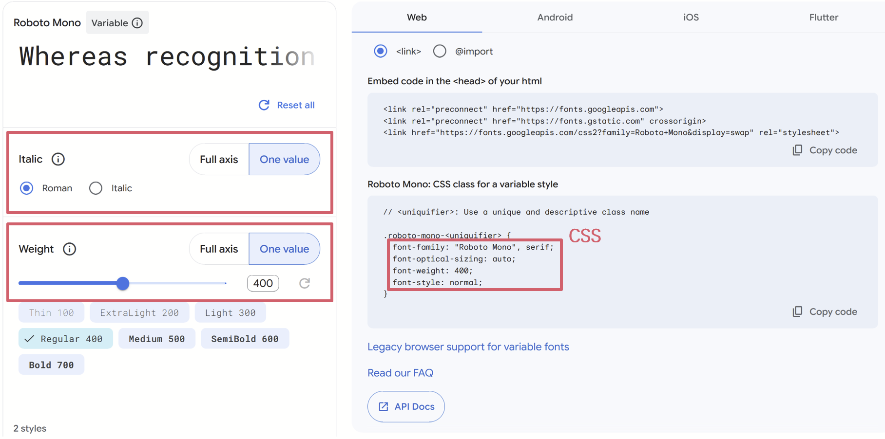 font-family: 'Roboto Mono', monospace !important;