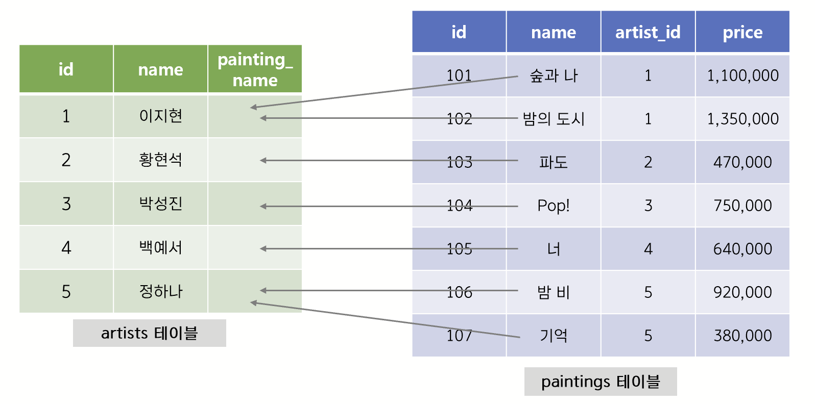 • paintings 테이블이 참조되어, 해당 테이블의 모든 행을 가져온다.