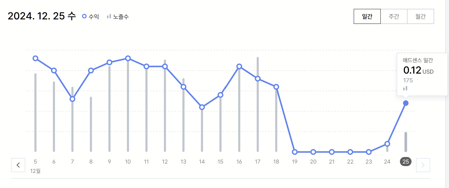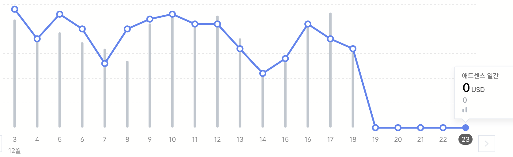 오랜만에 블로그 통계 현황을 확인했는데 며칠 째 수익 곡선이 0으로 유지되고 있음을 발견하게 되었다.
