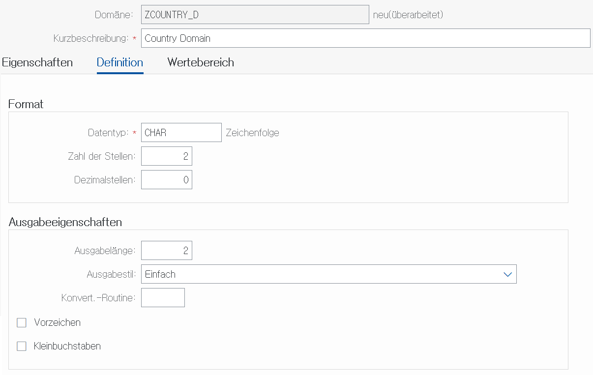 ABAP Dictionary 에는 2단계 도메인 원칙 (ein zweistufiges Domänenprinzip / Two-level Domain Principle) 이 있다.