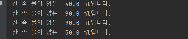 for 구문을 이용해 ArrayList 내 모든 잔의 물의 양을 확인해보자.