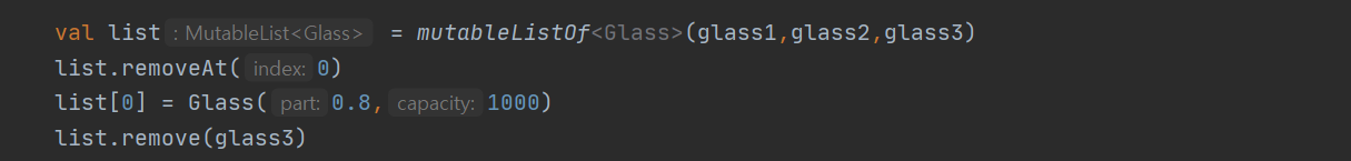 변할 수 있는(mutable) 리스트라 그냥 listOf와 달리 remove, add등 다양한 함수를 쓸 수 있는게 보인다.