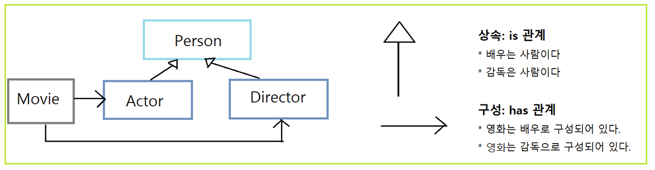 ( https://bruders.tistory.com/44 ) 에서 사용했던 클래스 계층 구조이다. 이 때 만들어진 영화는 비평가로부터 평가되어야 한다고 가정해보자. 이를 위해 비평 (Rating) 과 비평가 (Reviewer)에 대한 클래스를 추가로 만든다면 클래스 계층 구조는 어떻게 생겨야 할까?