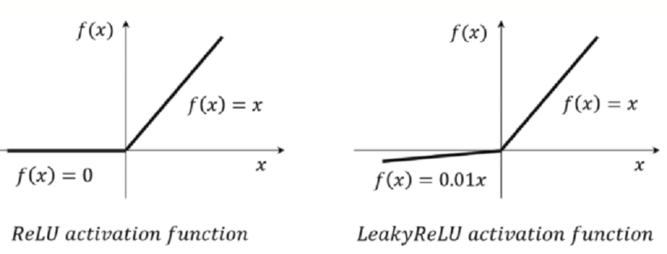 - Leakly ReLU는 음수의 x값에 대해 미분값이 0되지 않는다.