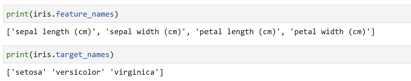 DESCR을 통해서도 볼 수 있지만 feature_names 와 tager_nams를 통해서 피처와 레이블의 이름을 알아낼 수 있다.