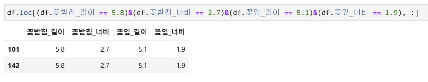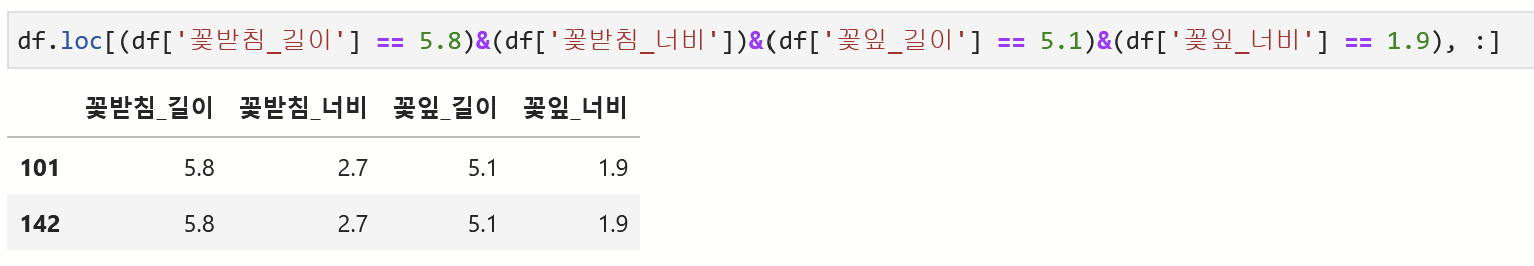 현재 142번 데이터가 중복됨을 알 수 있다. [ loc 속성을 통해 인덱스를 기준으로 행 데이터를 추출할 수 있다.]