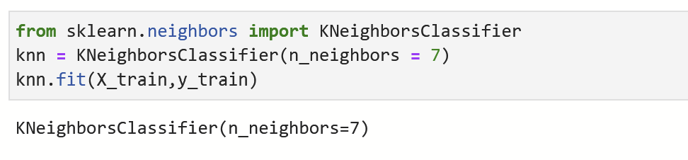 k = 7 로 KNN 모델을 정의하구 fit()으로 학습시킨다.