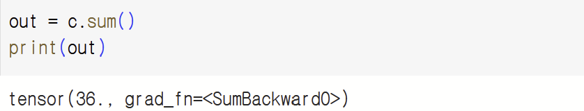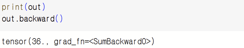 out 에서 grad_fn 되었던게 SumBackward니 backward()로 SumBackward가 나오는 것.