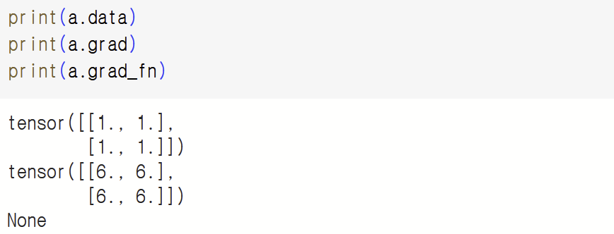 a의 grad_fn이 None인 이유는 직접적으로 계산한 부분이 없었기 때문